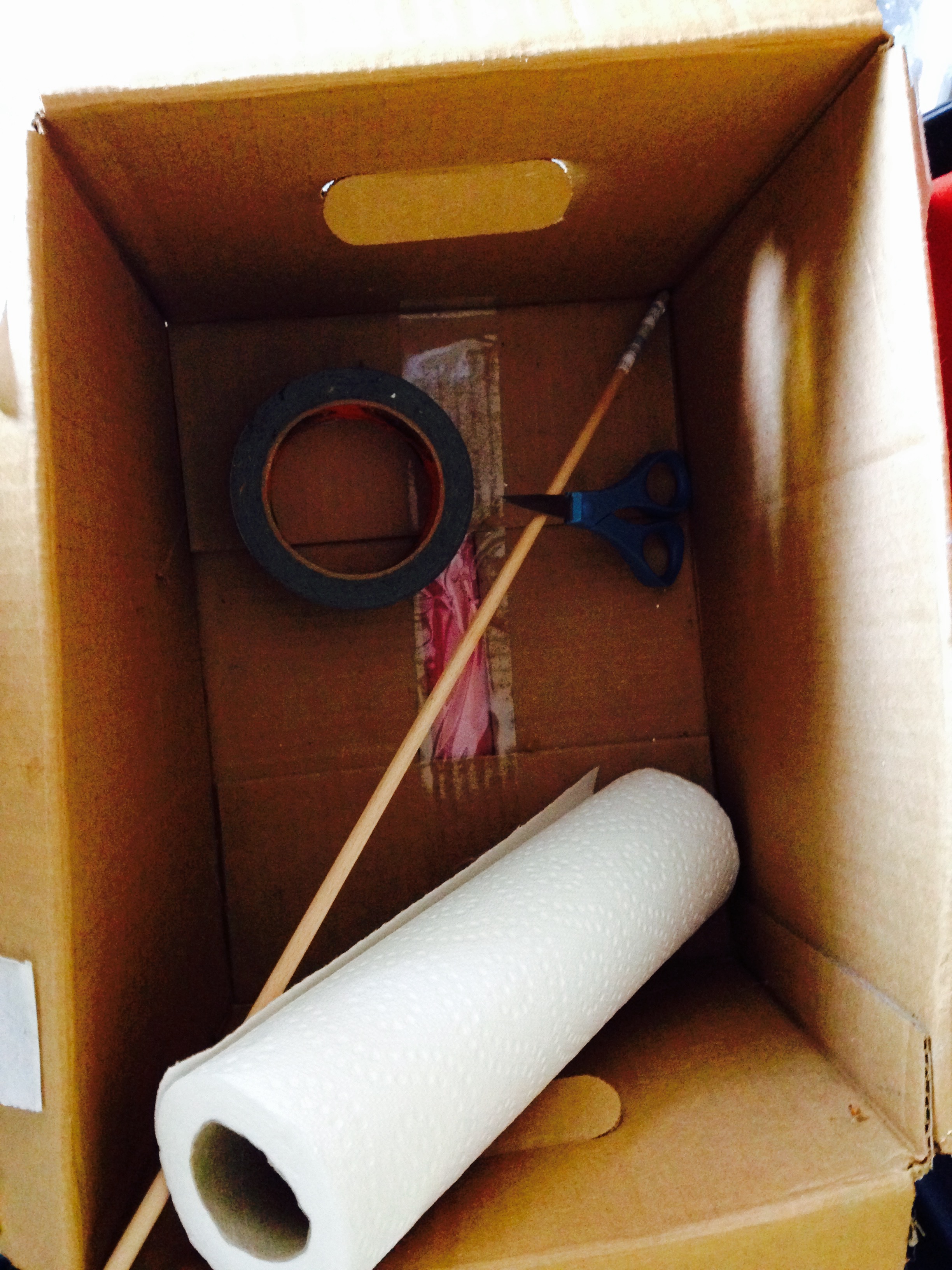- A dowel rod or similar item. The diameter isn’t that important as long as it’s longer than your box.