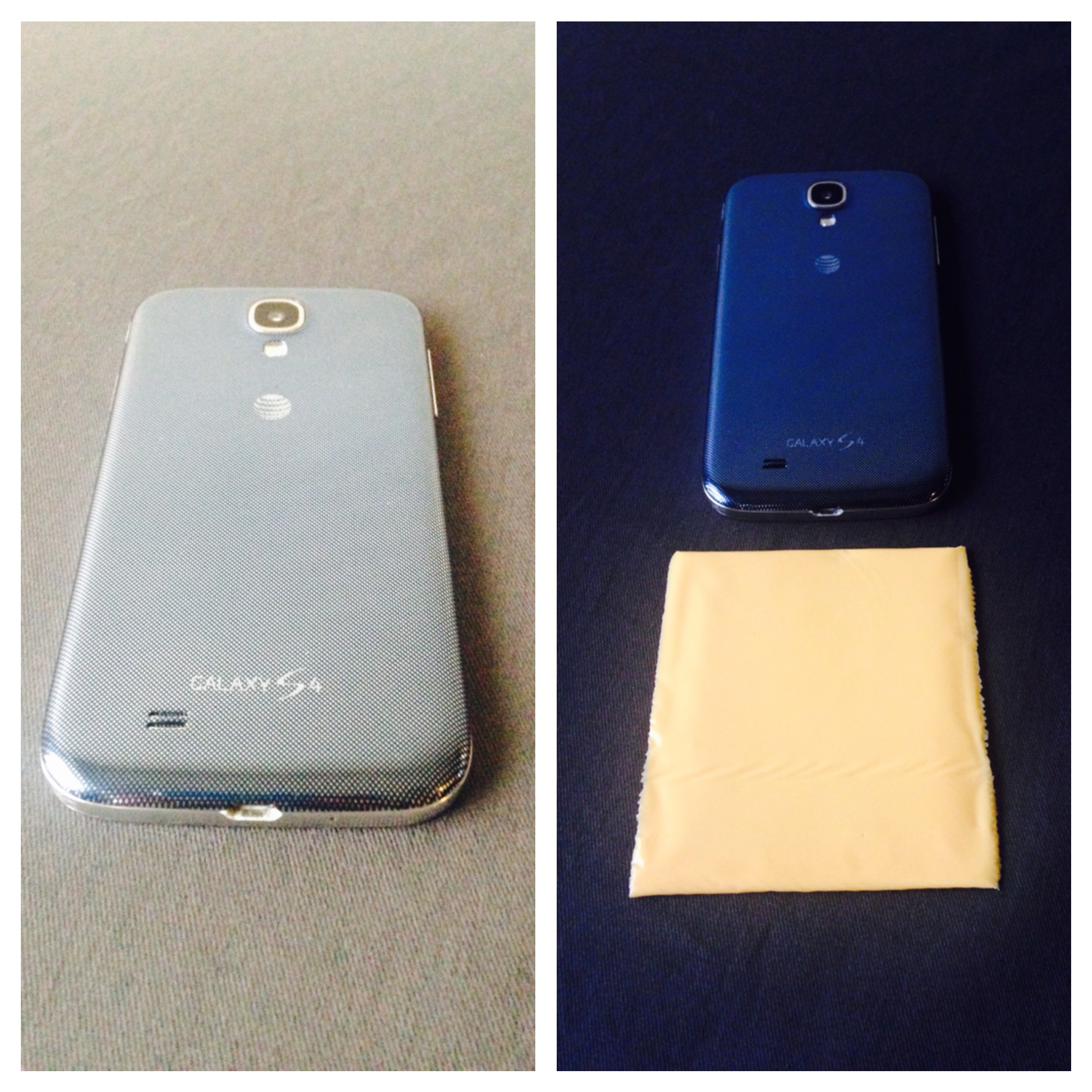 The Galaxy S4 that I have is blue, but the screen has been replaced and doesn’t match the blue of the rest of the phone. The phone is 5.25” long, 2.625” wide, and .25” thick. The Galaxy S4 has a camera and buttons. There is also a light on the back. You can probably use it for a flashlight. It has a rechargeable battery and a place for a memory card. There is even a headphone jack.