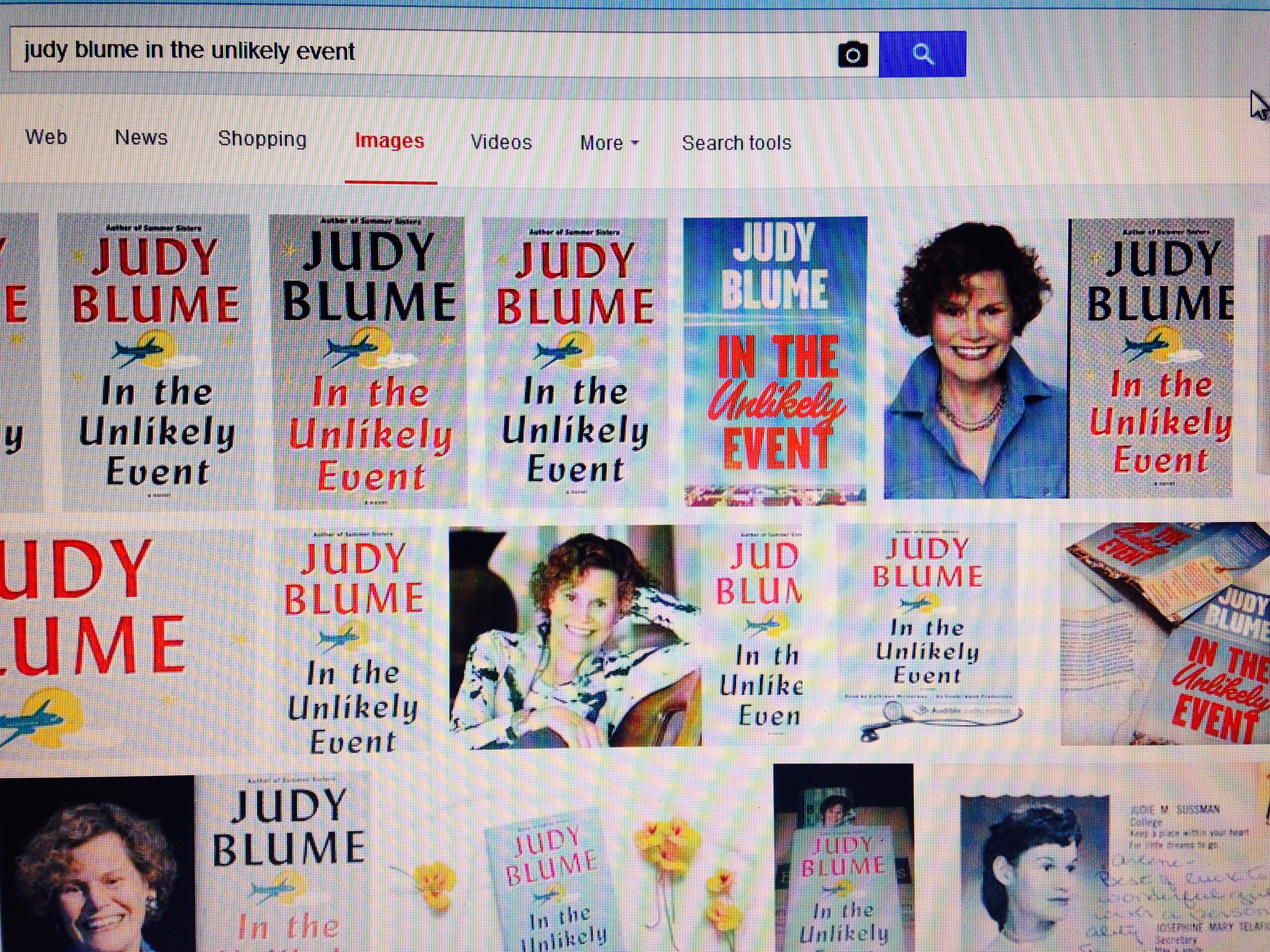 In the Unlikely Event is a book. You can get a hardcover copy and probably a digital copy. There is probably even a paperback version. I don’t really know for sure. Ms. Blume has written numerous books for children and young adults, but this is a book for grown-ups. I think. Kids could probably read it. There might not be too many big words in it. I don’t really know. I haven’t read it yet either.